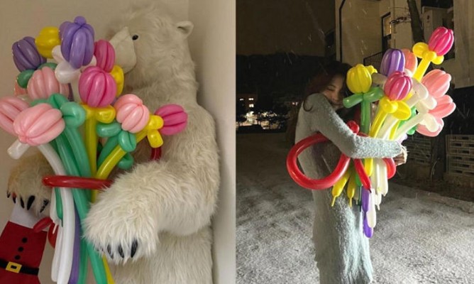 그 중 한소희가 류준열의 사진전에 방문한 인증샷과 북극곰 인형의 품에 꼭 안겨있는 사진이 있었다.